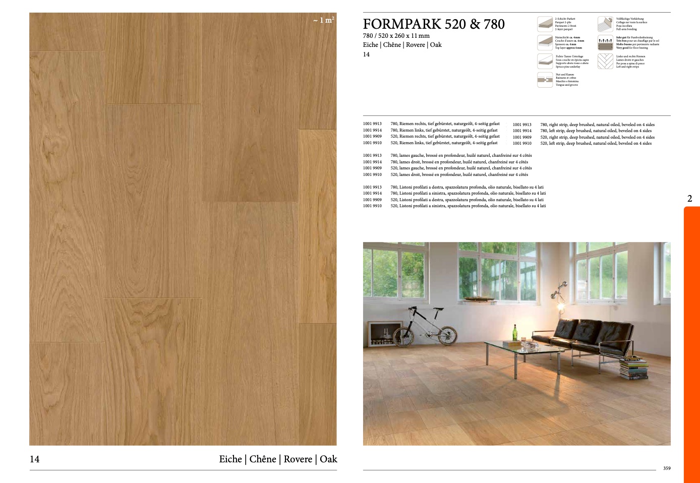 780, lames droit, brossé en profondeur, huilé naturel, chanfreiné sur 4 côtés