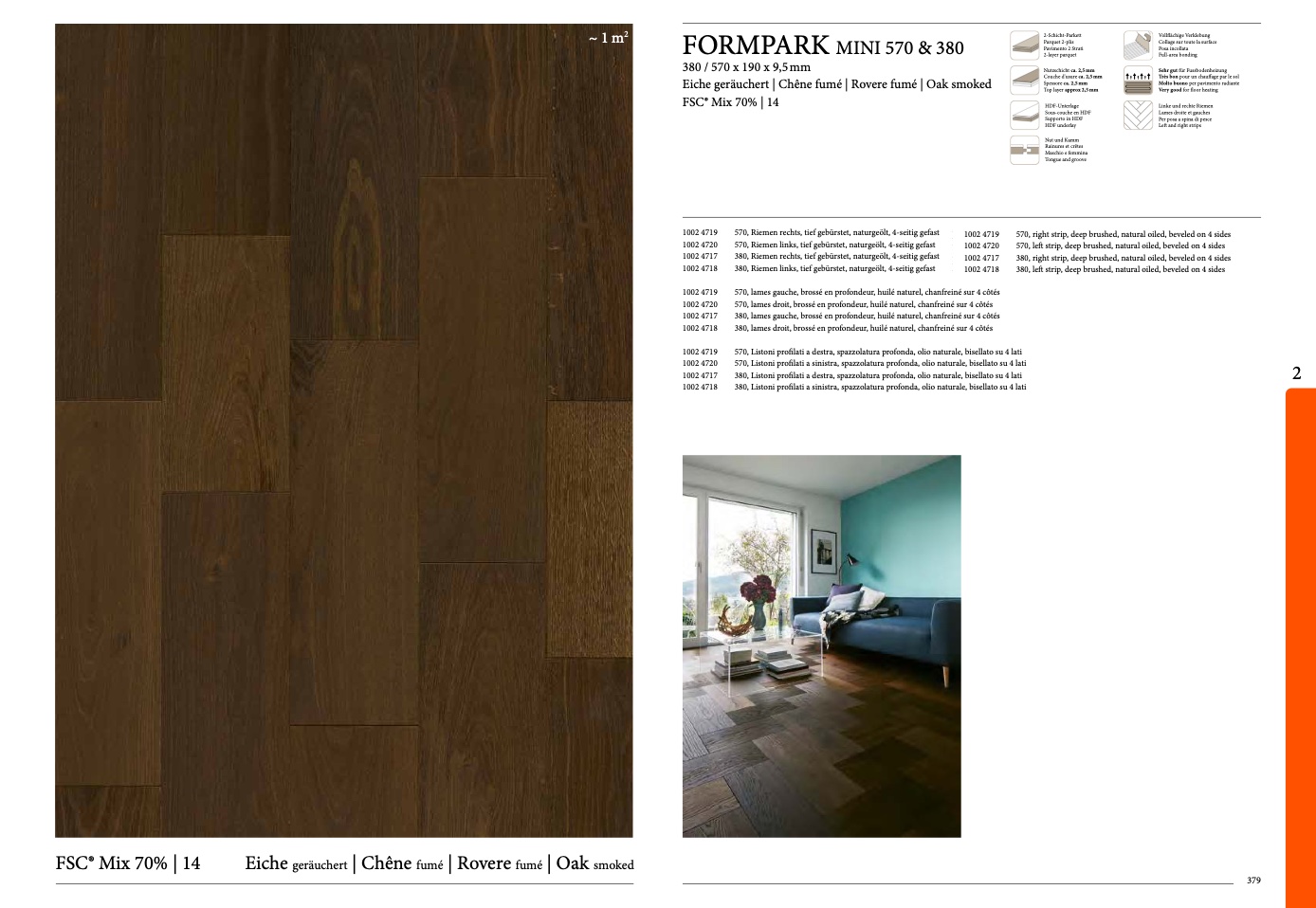 380, lames droit, brossé en profondeur, huilé naturel, chanfreiné sur 4 côtés
