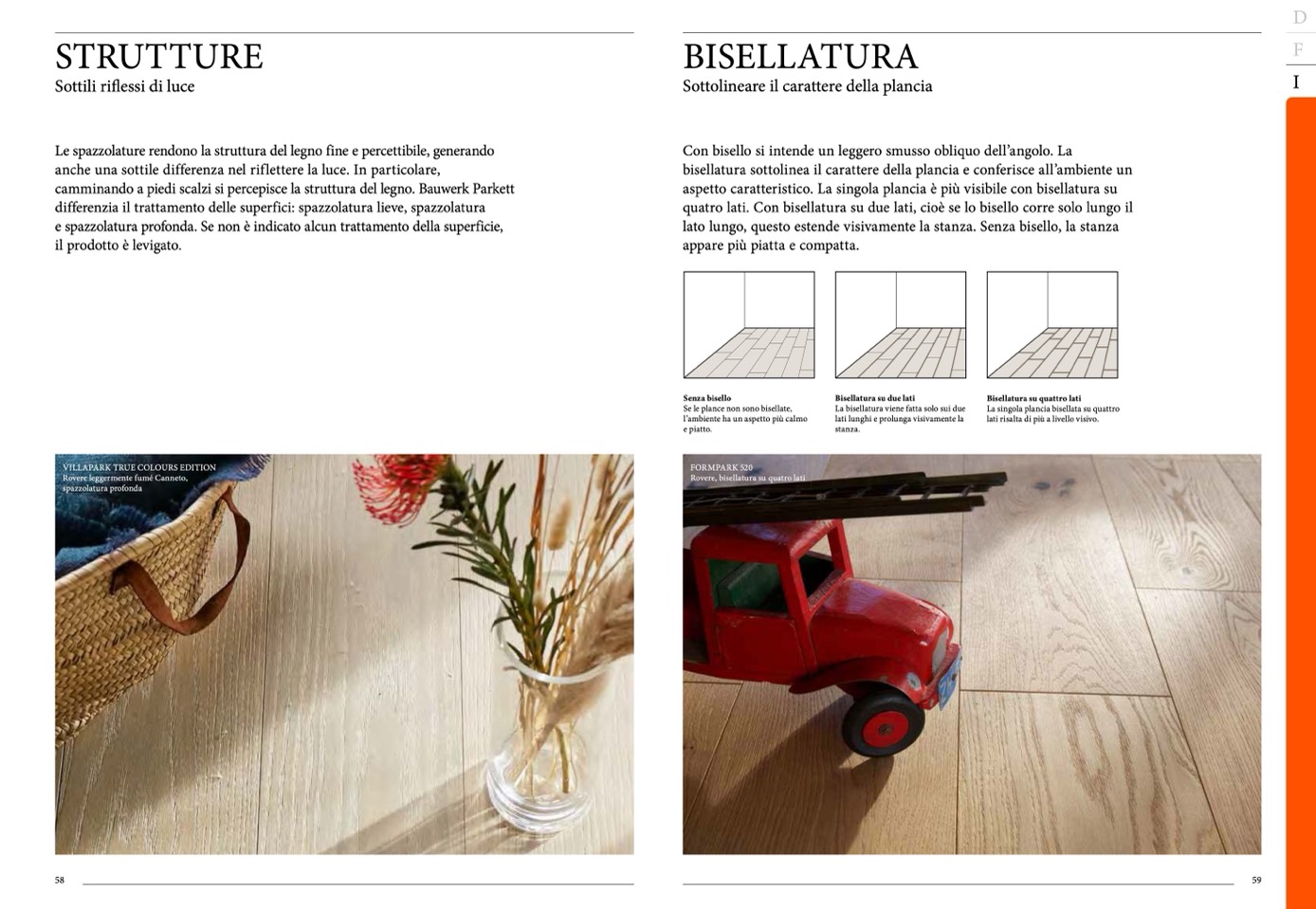 camminando a piedi scalzi si percepisce la struttura del legno. Bauwerk Parkett