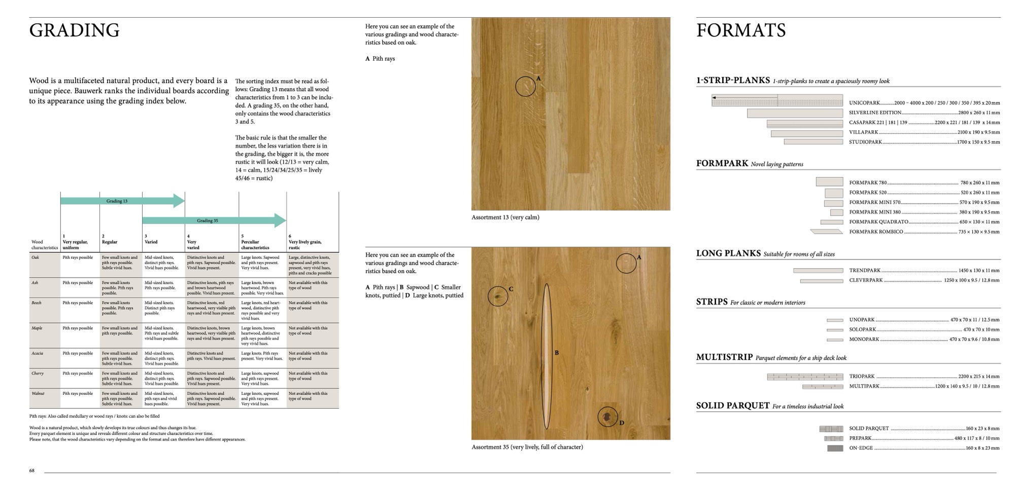 various gradings and wood characte-