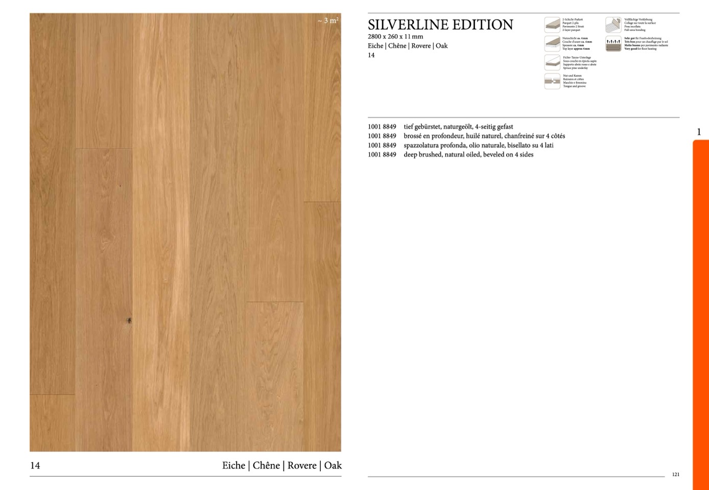 tief gebürstet, naturgeölt, 4-seitig gefast
