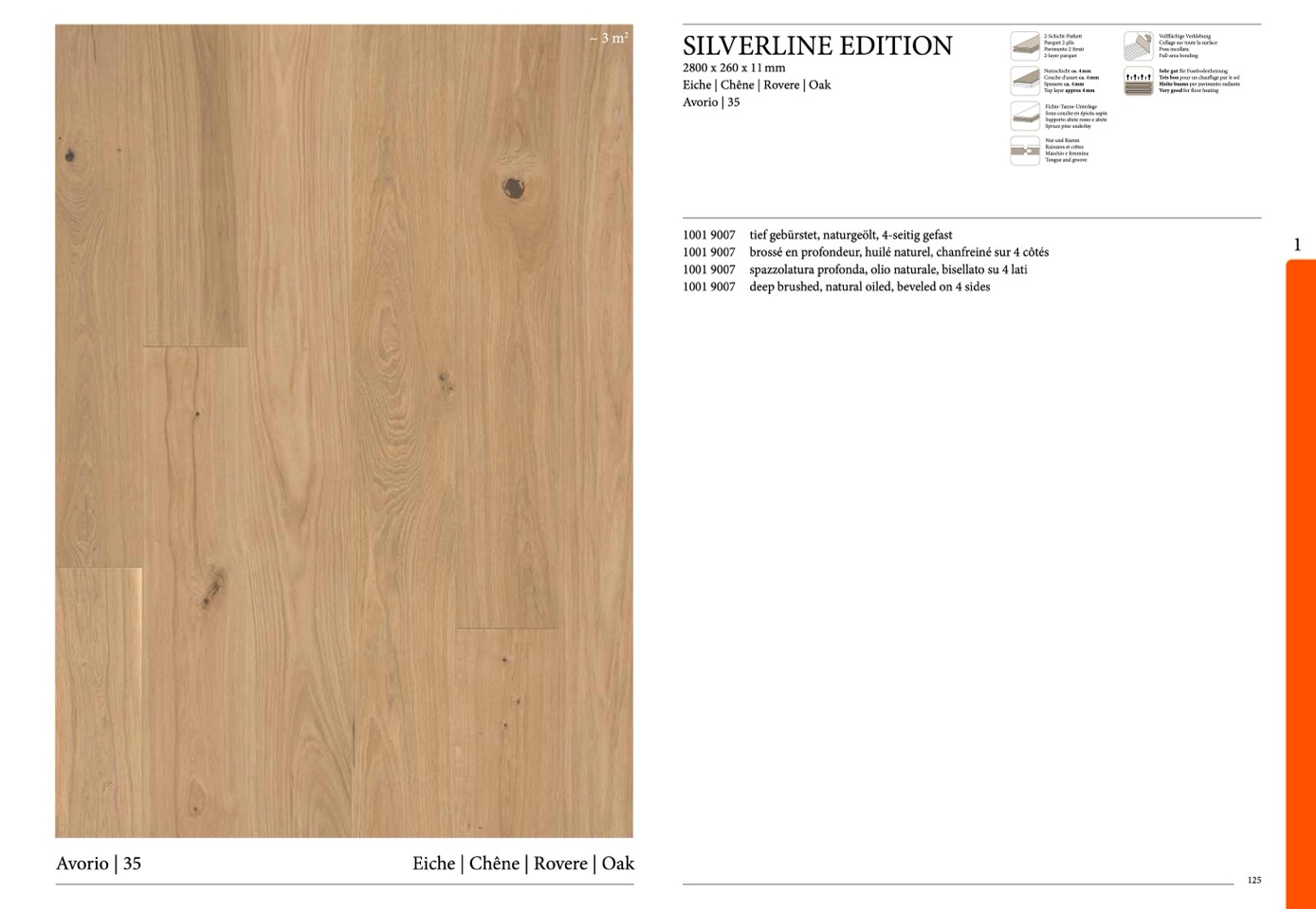 tief gebürstet, naturgeölt, 4-seitig gefast