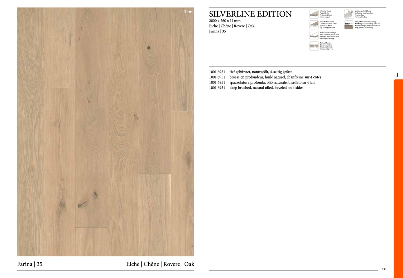 tief gebürstet, naturgeölt, 4-seitig gefast
