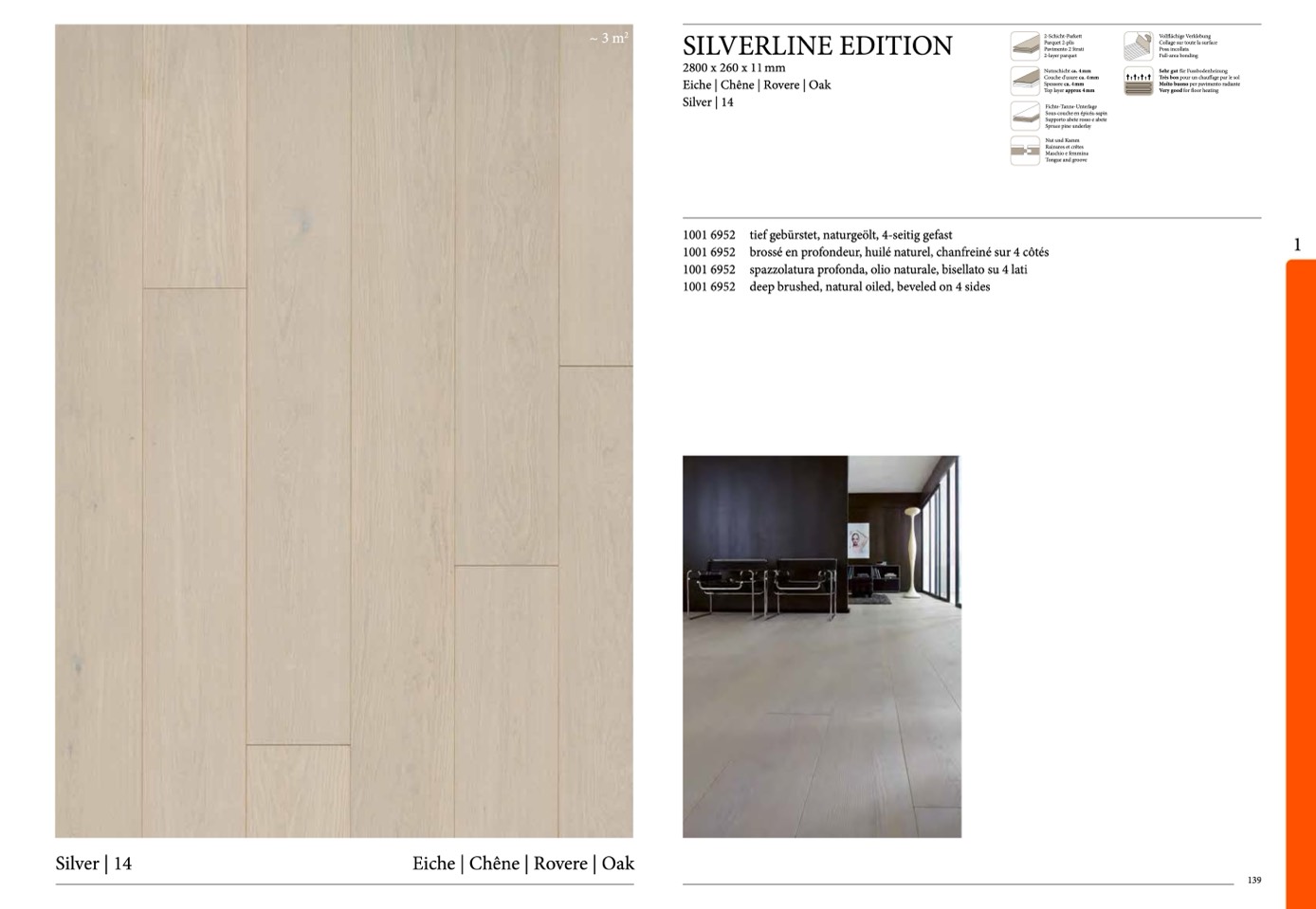 tief gebürstet, naturgeölt, 4-seitig gefast