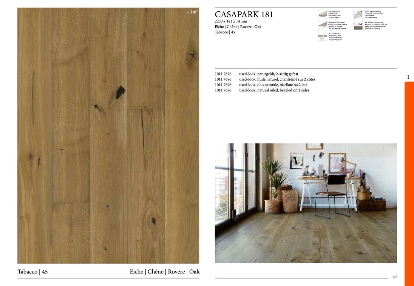 used-look, huilé naturel, chanfreiné sur 2 côtés