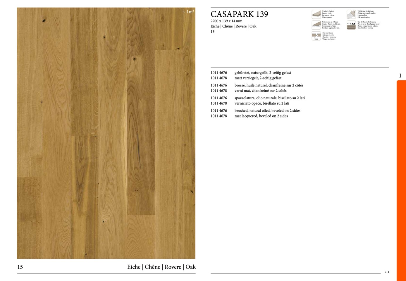 gebürstet, naturgeölt, 2-seitig gefast
