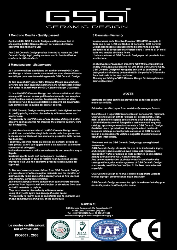 mentali per poter usufruire della garanzia GSG Ceramic Design.