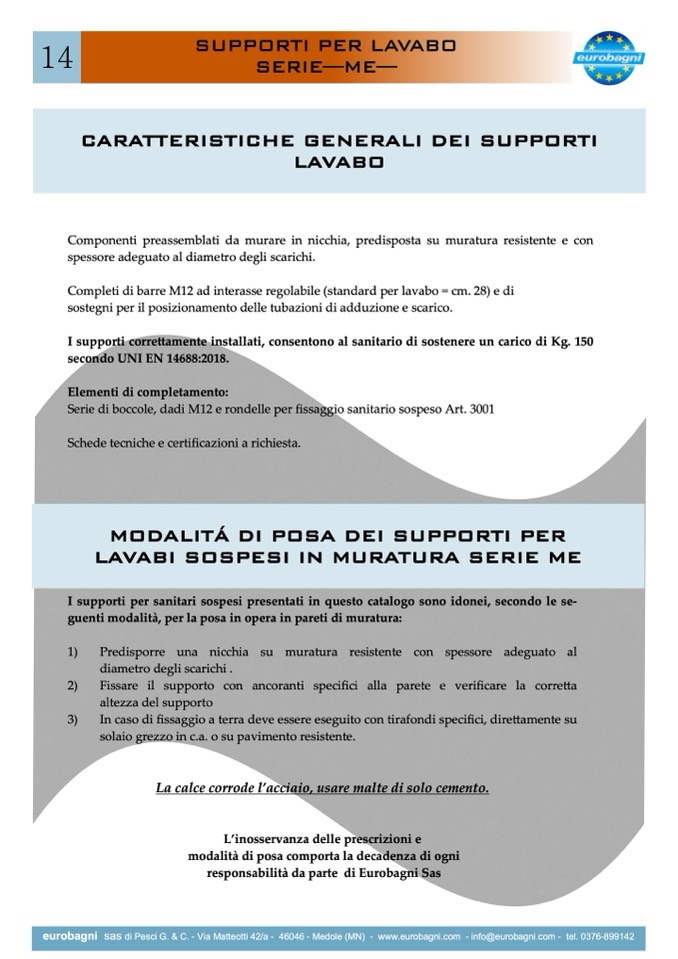 eurobagni sas di Pesci G. & C. - Via Matteotti 42/a - 46046 - Medole (MN) - www.eurobagni.com - info@eurobagni.com - tel. 0376-899142