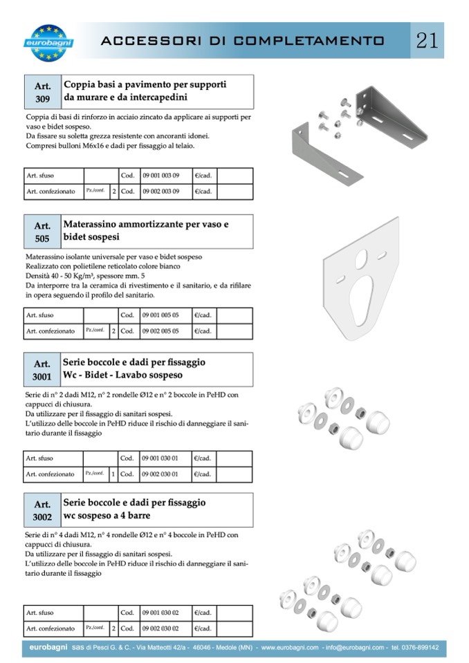 21e2u1robagni sas di Pesci G. & C. - Via Matteotti 42/a - 46046 - Medole (MN) - www.eurobagni.com - info@eurobagni.com - tel. 0376-899142