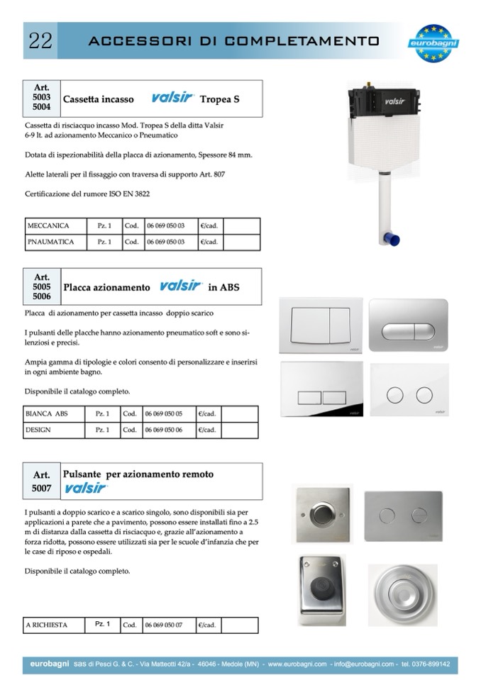 eurobagni sas di Pesci G. & C. - Via Matteotti 42/a - 46046 - Medole (MN) - www.eurobagni.com - info@eurobagni.com - tel. 0376-899142