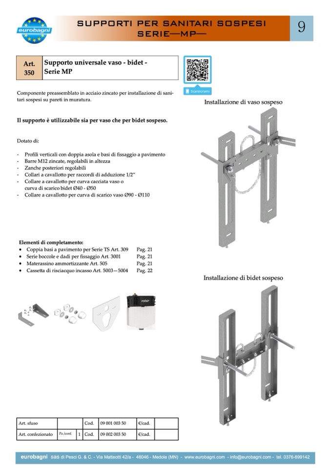 Il supporto è utilizzabile sia per vaso che per bidet sospeso.