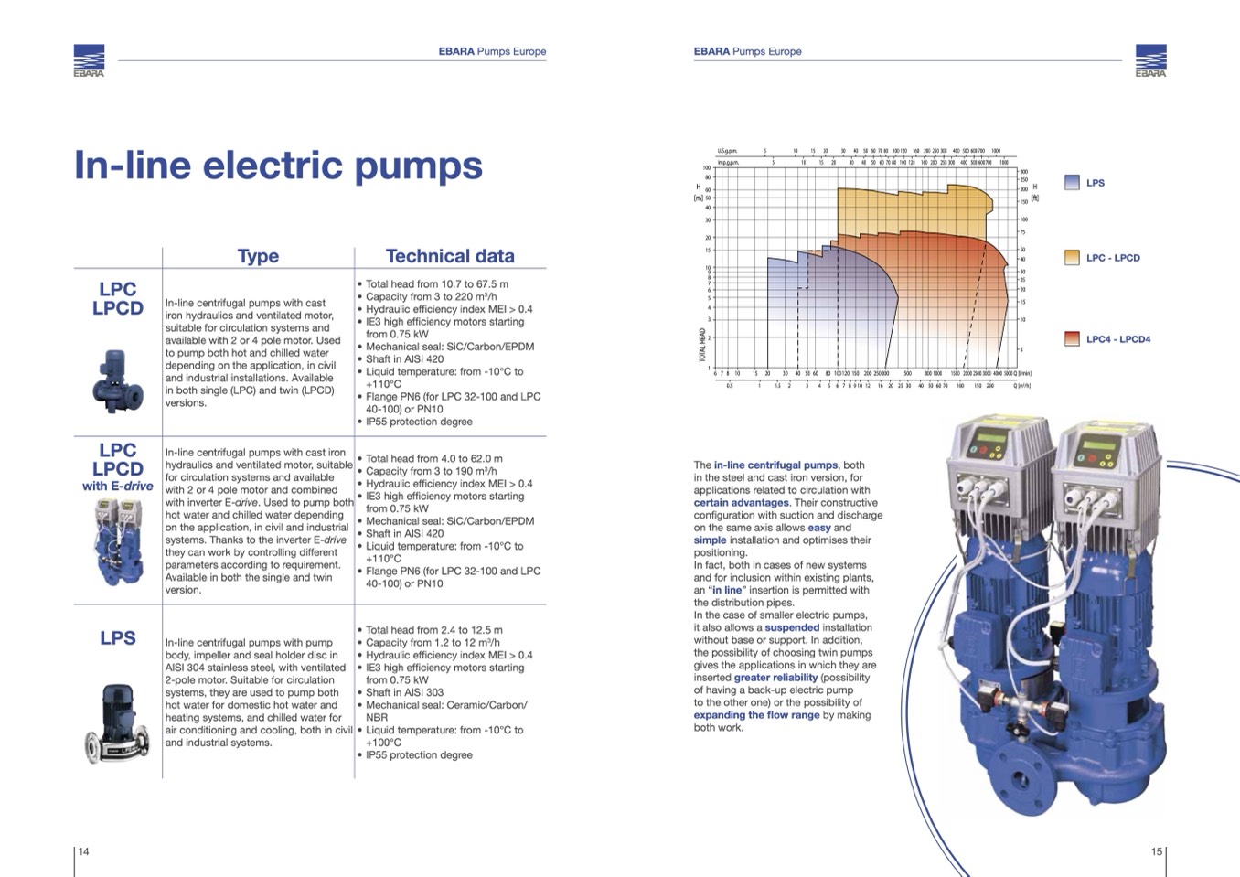 The in-line centrifugal pumps, both