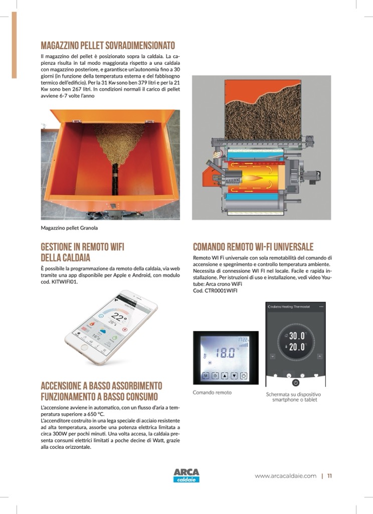 Il magazzino del pellet è posizionato sopra la caldaia. La ca-