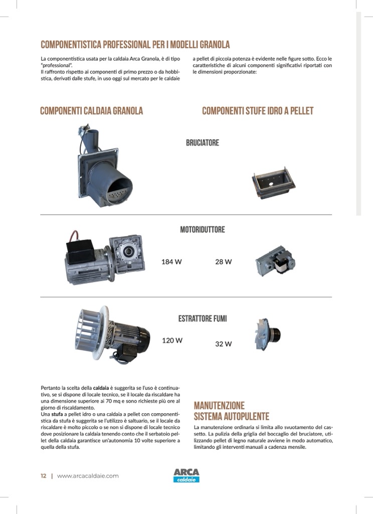 La componentistica usata per la caldaia Arca Granola, è di tipo