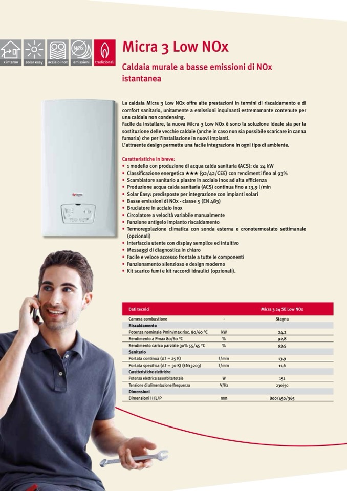 La caldaia Micra 3 Low NOx offre alte prestazioni in termini di riscaldamento e di