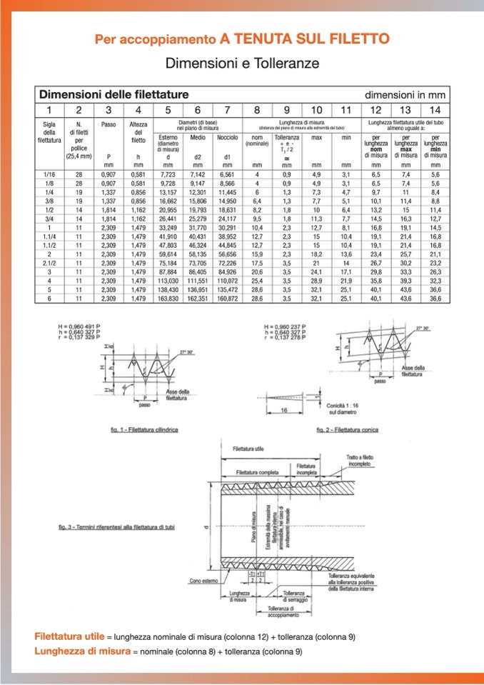 Lunghezza filettatura utile del tubo