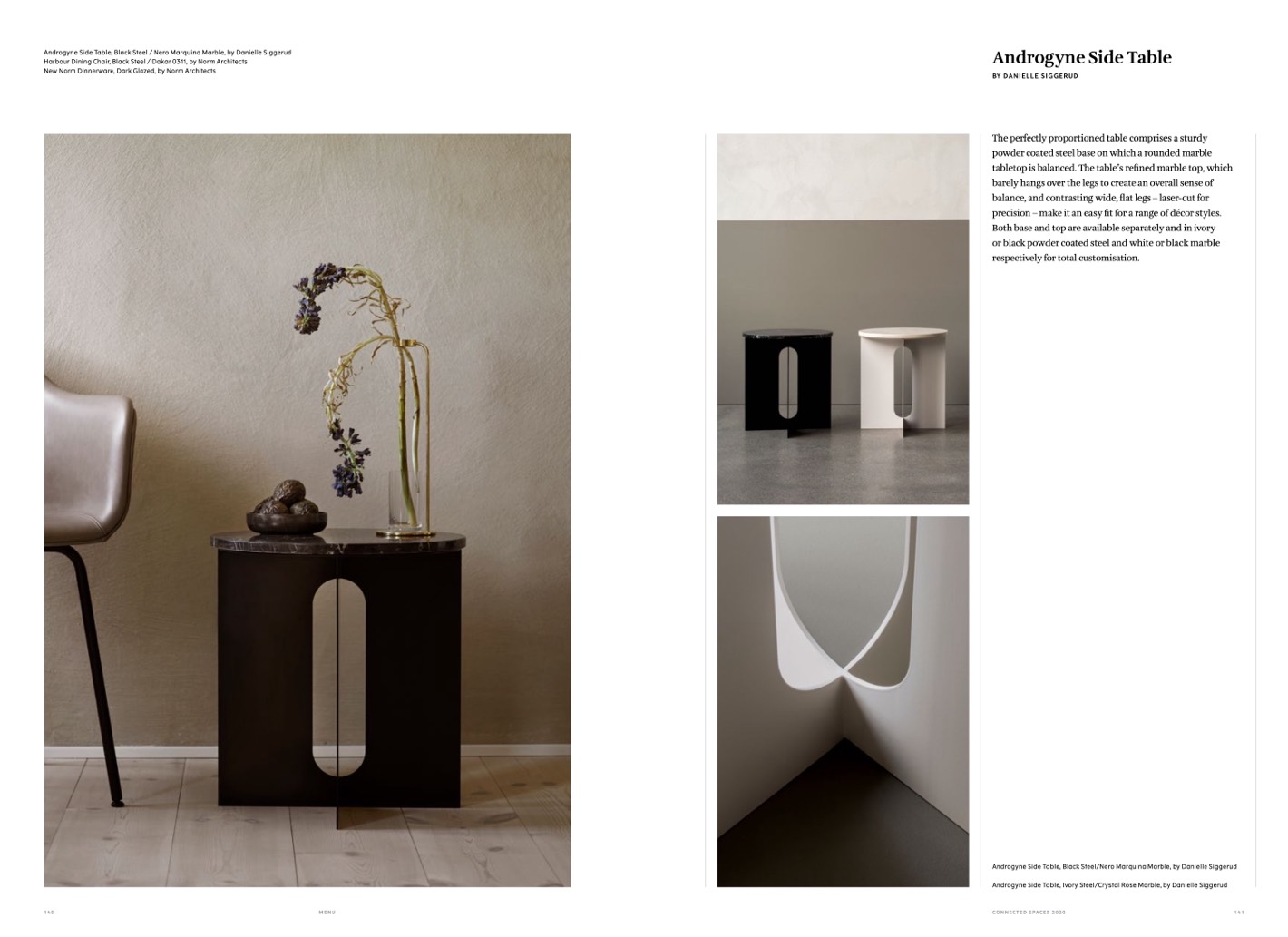Androgyne Side Table, Ivory Steel/Crystal Rose Marble, by Danielle Siggerud