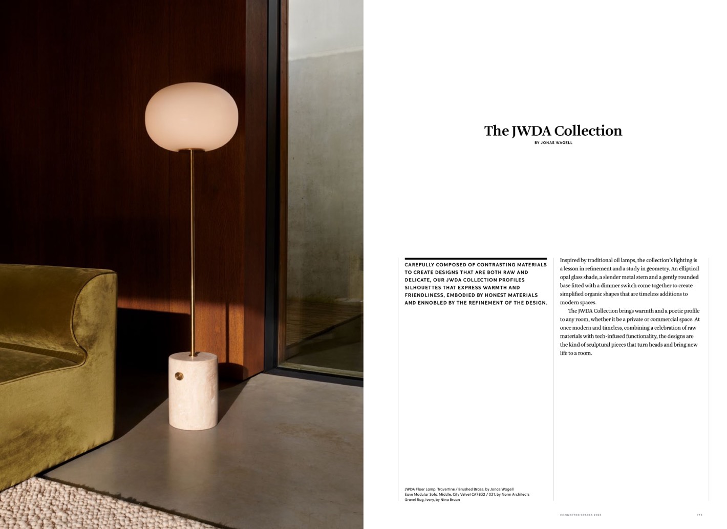 JWDA Floor Lamp, Travertine / Brushed Brass, by Jonas Wagell