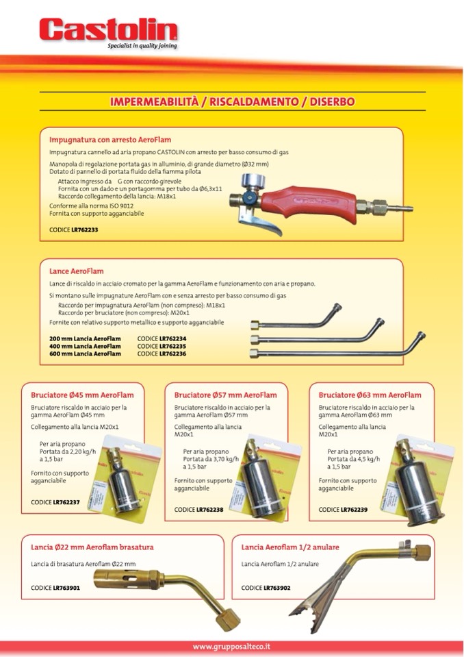 Impugnatura cannello ad aria propano CASTOLIN con arresto per basso consumo di gas