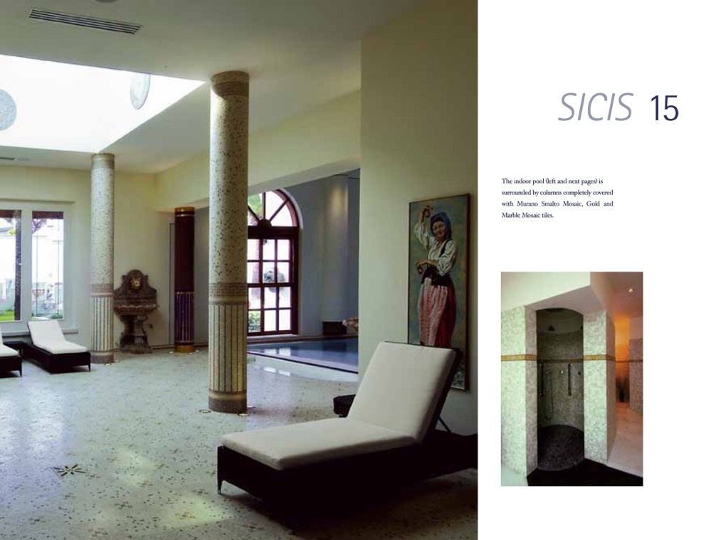 The indoor pool (left and next pages) is