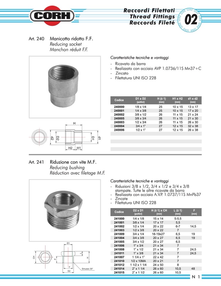 - Riduzioni 3/8 x 1/2, 3/4 x 1/2 e 3/4 x 3/8