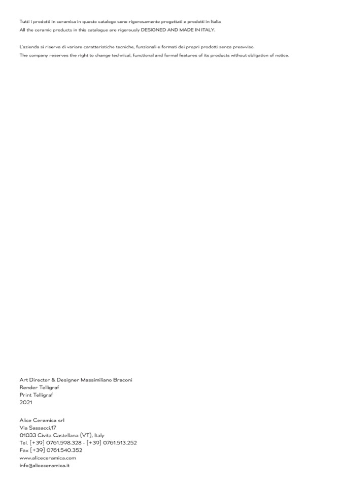 All the ceramic products in this catalogue are rigorously DESIGNED AND MADE IN ITALY.