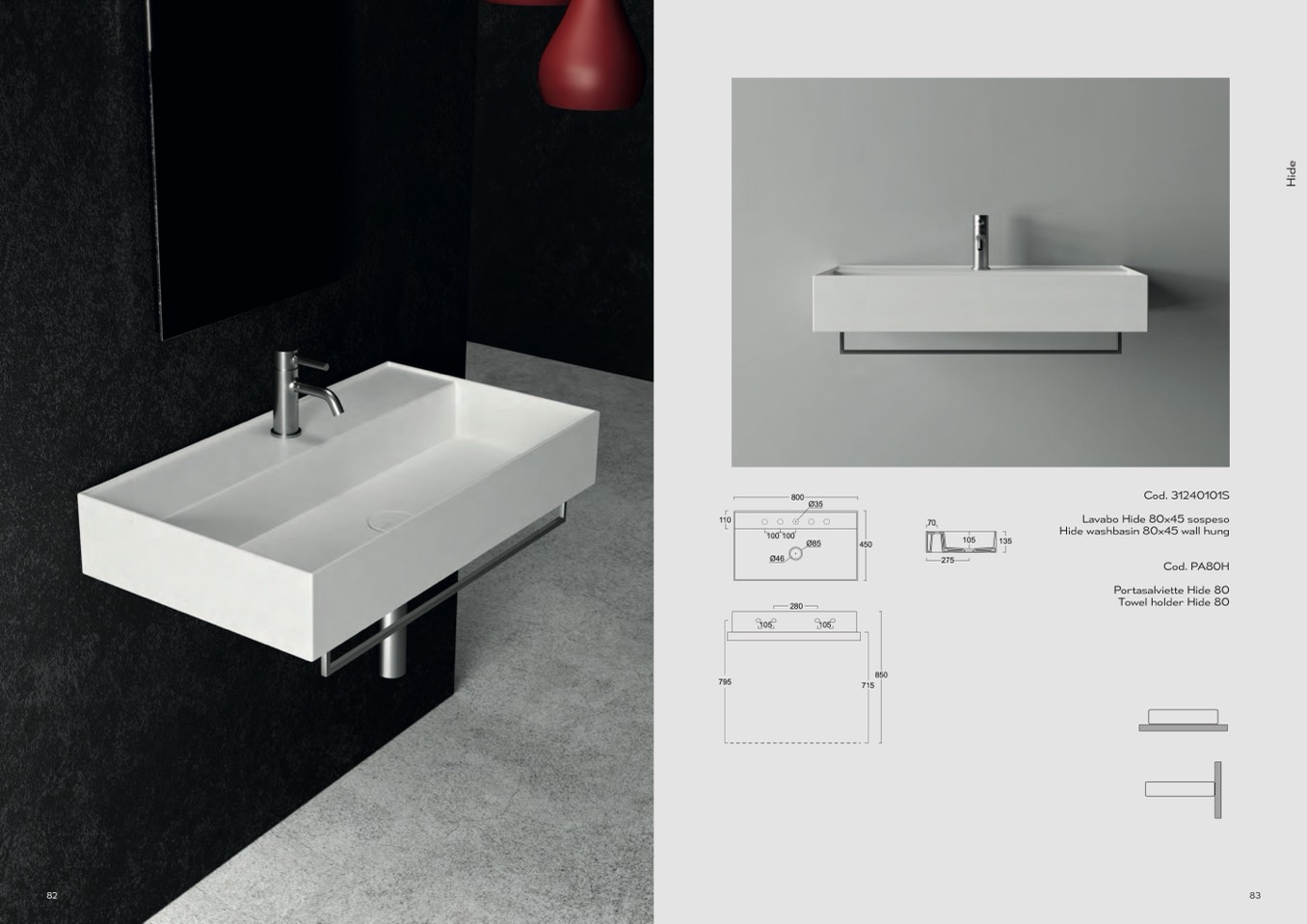 Lavabo Hide 80x45 sospeso
