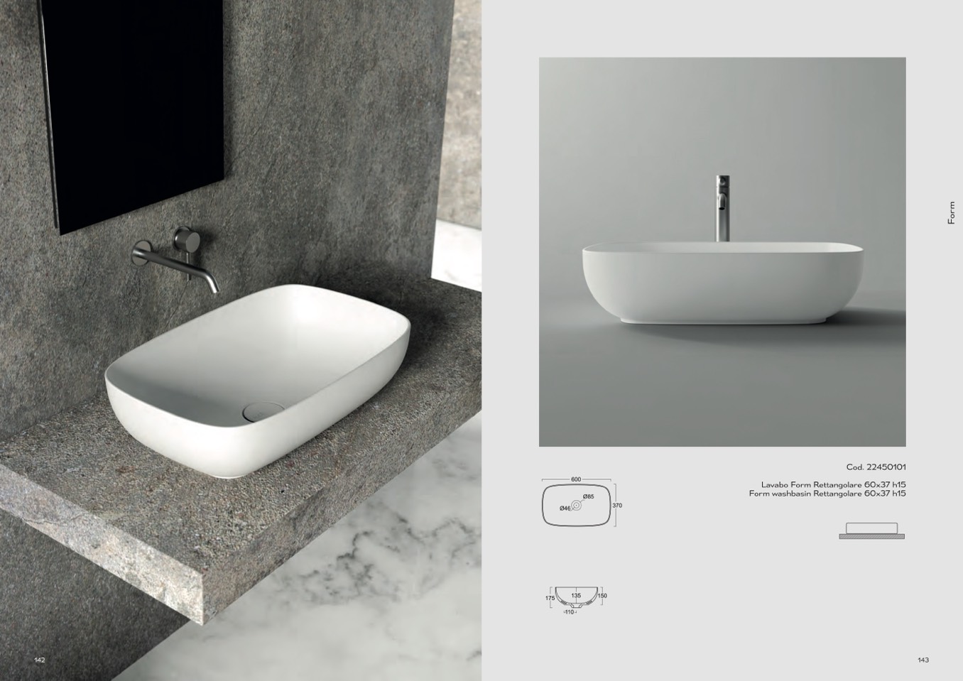 Form washbasin Rettangolare 60x37 h15
