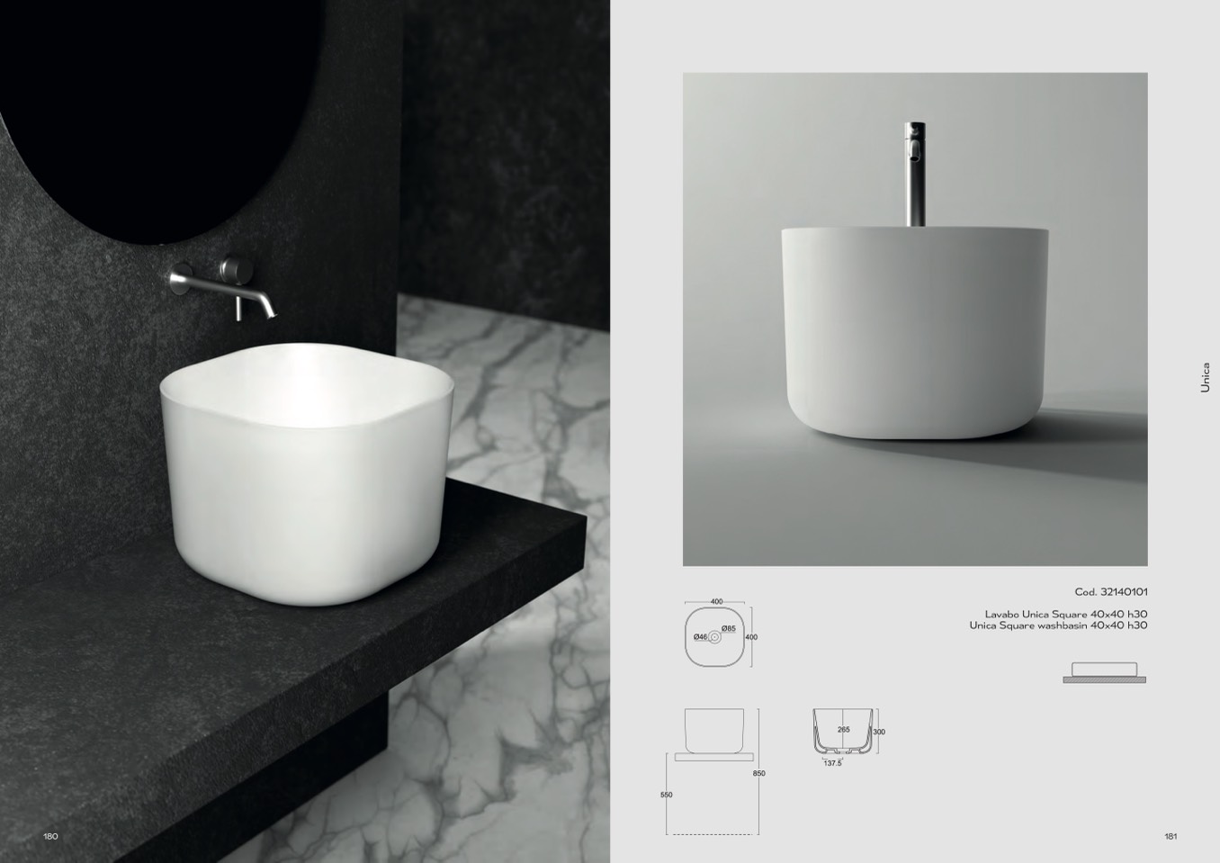 Unica Square washbasin 40x40 h30