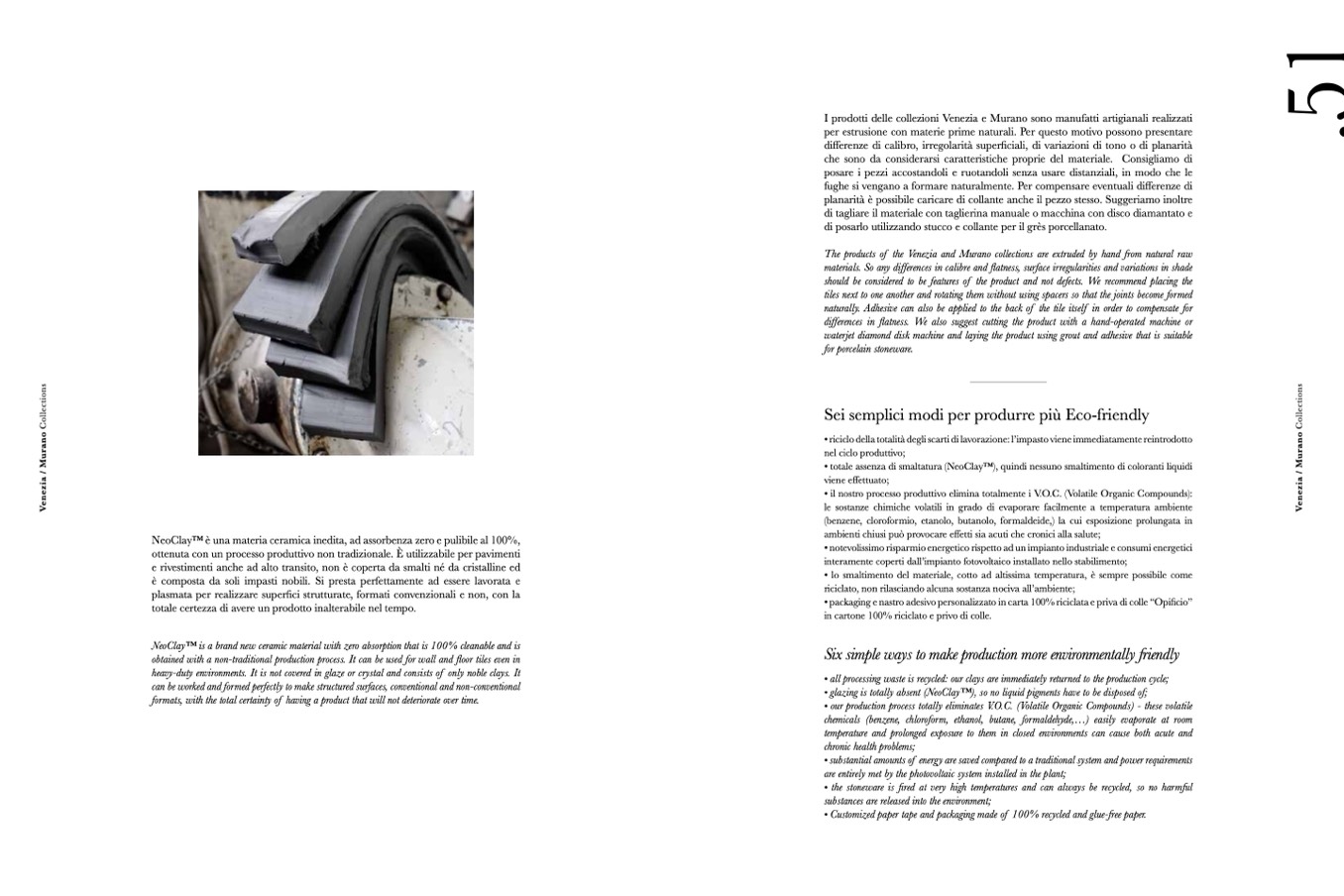 • glazing is totally absent (NeoClayTM), so no liquid pigments have to be disposed of;