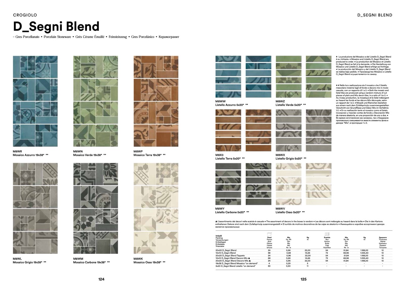 è su richiesta. • Mosaico and Listello D_Segni Blend are
