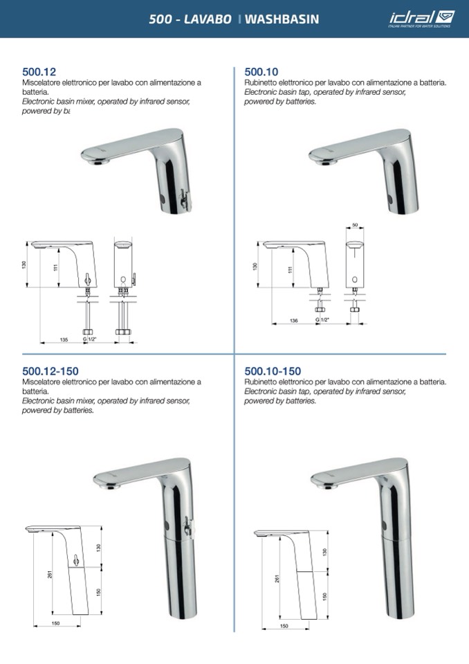 lavabo serie 500 a fotocellula con alimentazione a