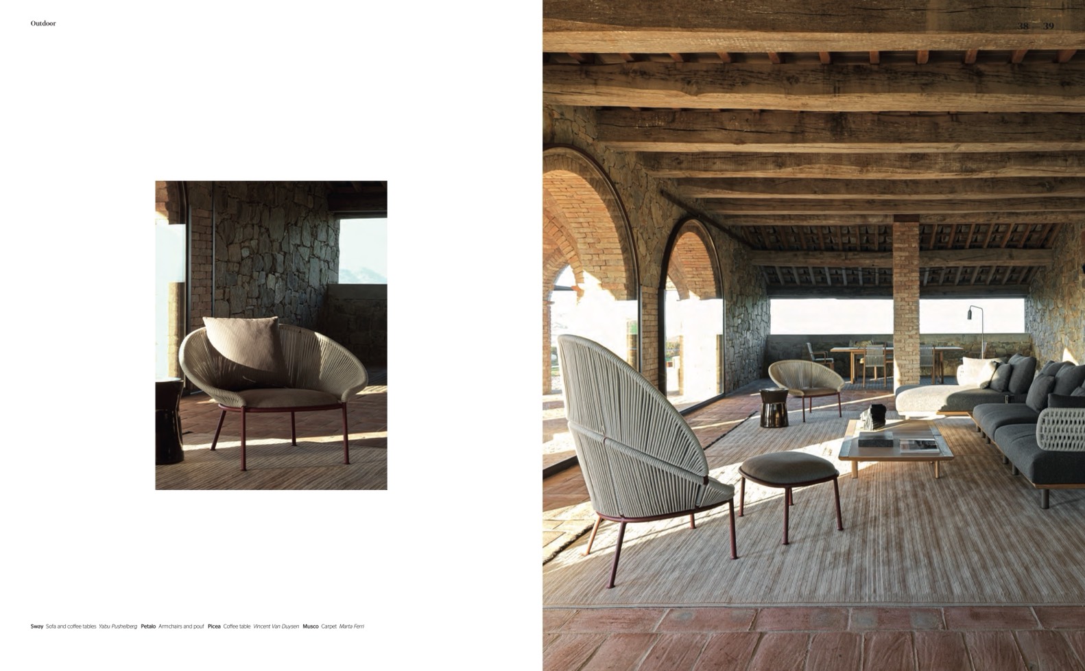 Sway Sofa and coffee tables Yabu Pushelberg Petalo Armchairs and pouf Picea Coffee table Vincent Van Duysen Musco Carpet Marta Ferri