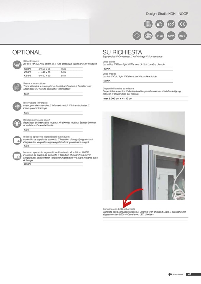 Canaleta con LEDs apantallados // Channel with shielded LEDs // Laufbahn mit
