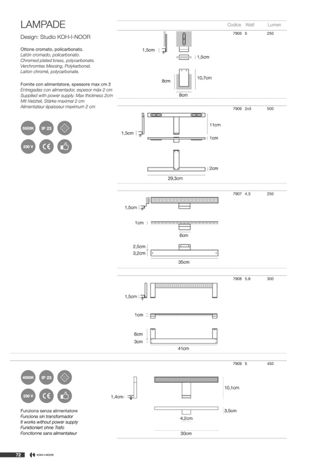 Ottone cromato, policarbonato.