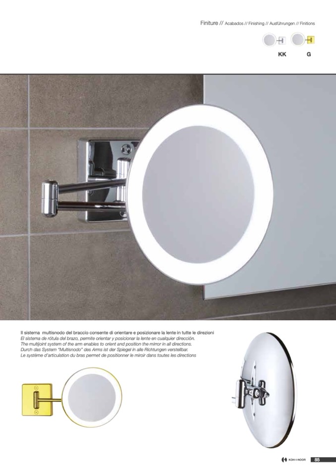 Durch das System “Multisnodo” des Arms ist der Spiegel in alle Richtungen verstellbar.