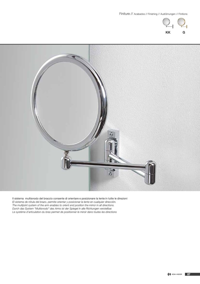 Durch das System “Multisnodo” des Arms ist der Spiegel in alle Richtungen verstellbar.