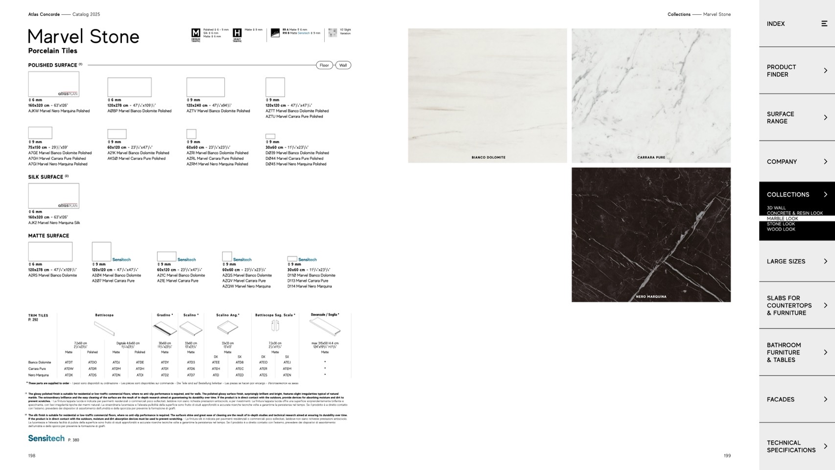 marble. The extraordinary brilliance and the easy cleaning of the surface are the result of in-depth research aimed at guaranteeing its durability over time. If the product is in direct contact with the outdoors, provide devices for absorbing moisture and dirt to
