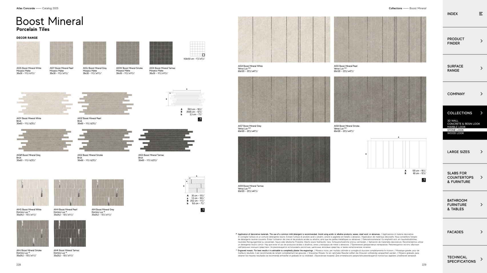 Si consiglia l'utilizzo di un comune detergente neutro. Evitare l'utilizzo di prodotti acidi o alcalini, ceranti e pagliette di metallo o abrasive. / Application de matériaux décoratifs. Nous conseillons l'emploi