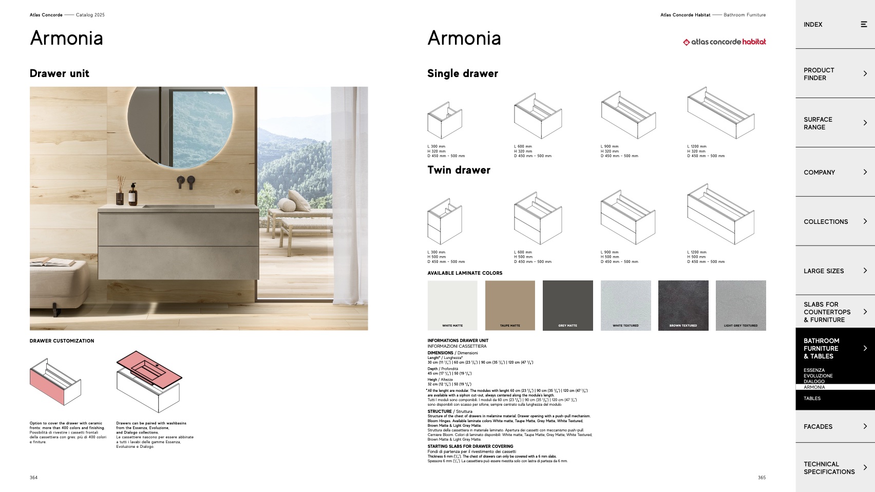 Cerniere Bloom. Colori di laminato disponibili: White matte, Taupe Matte, Grey Matte, White Textured,