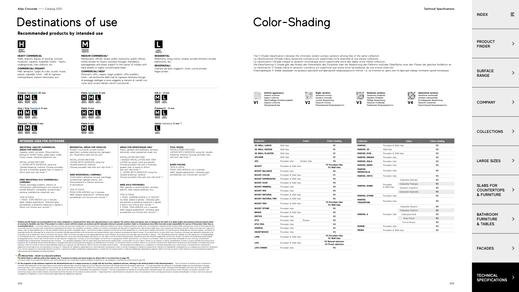 The V-Shade classification indicates the chromatic and/or surface variation among tiles of the same collection.