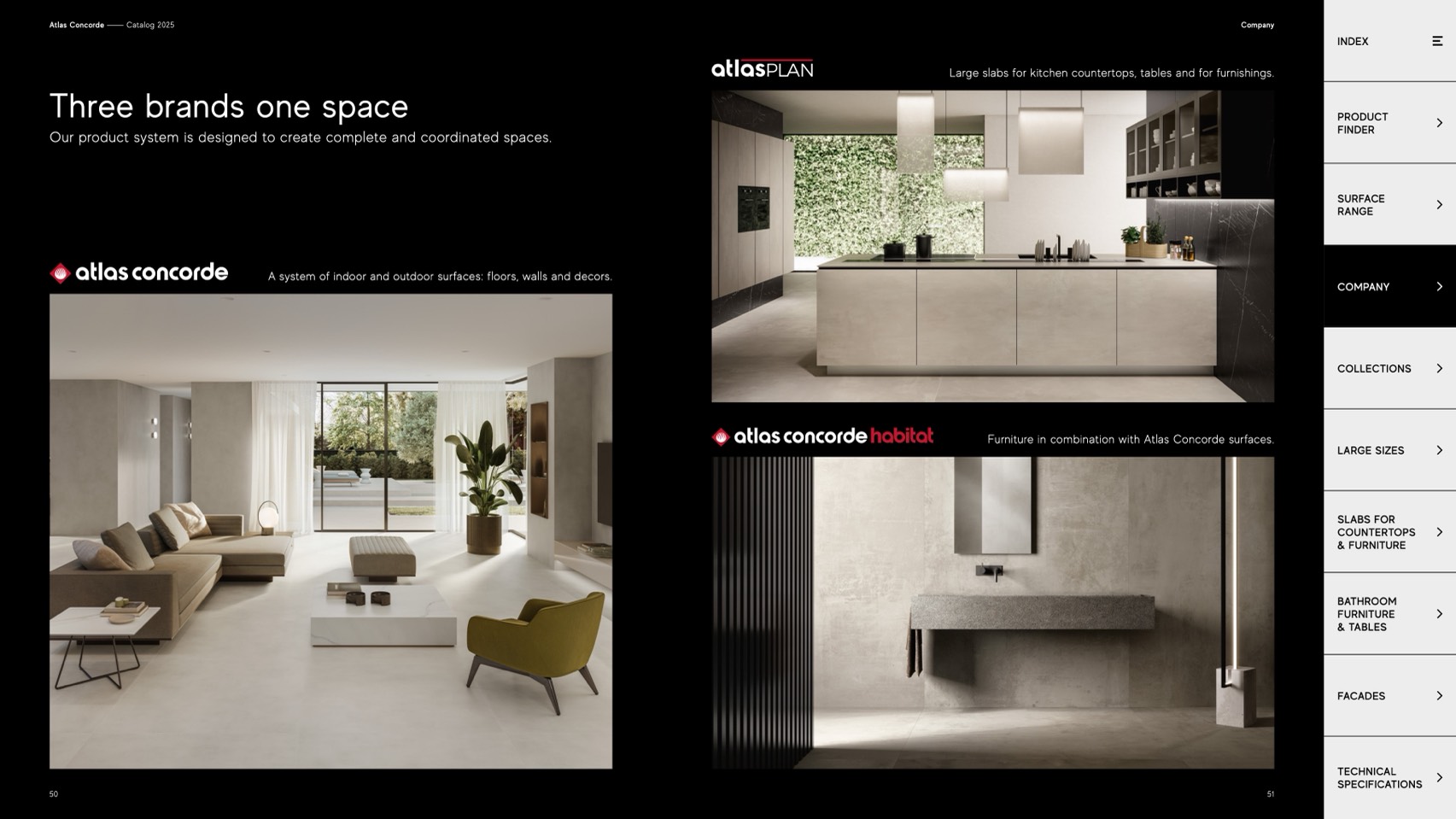 A system of indoor and outdoor surfaces: floors, walls and decors.