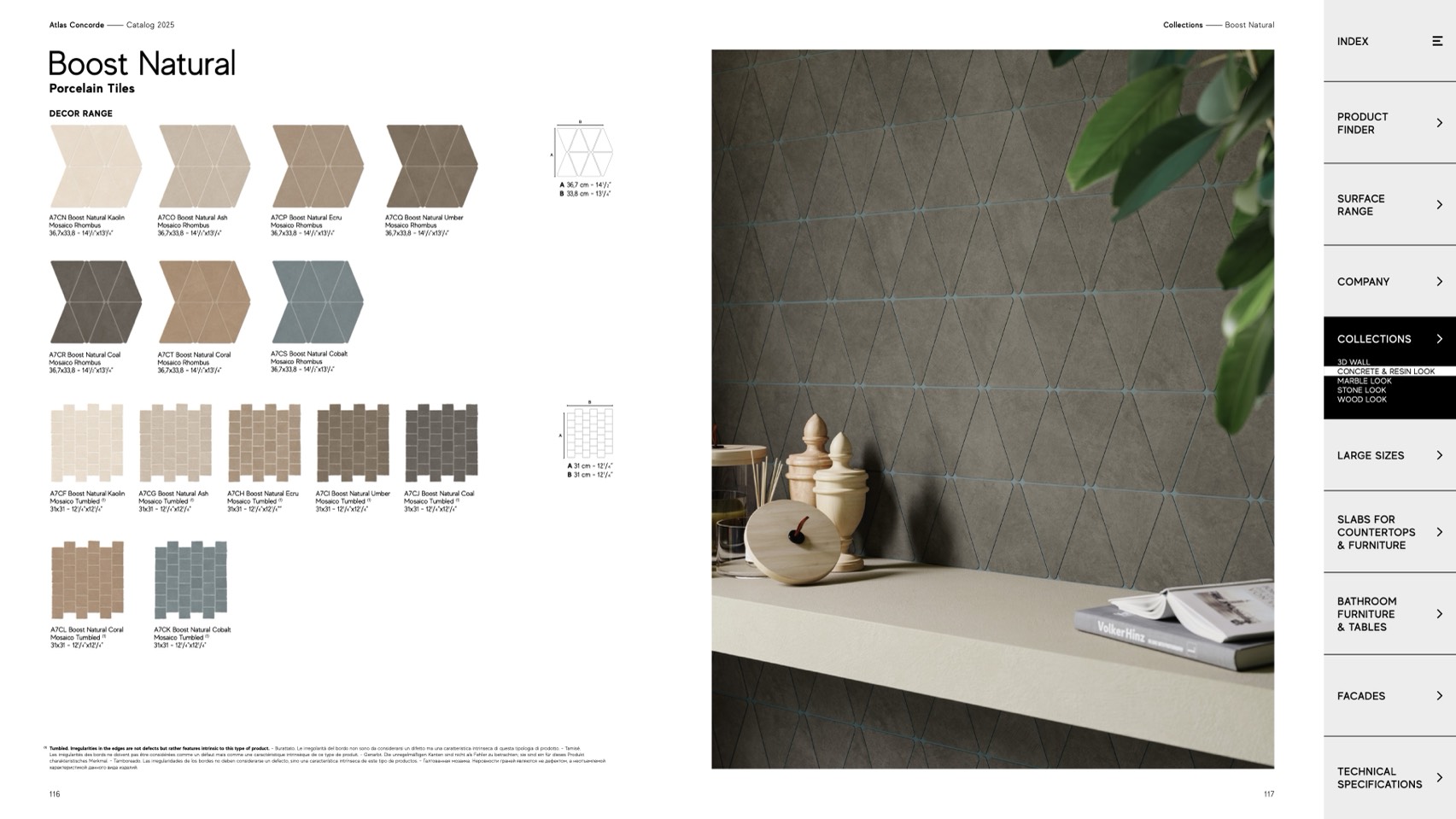 Tumbled. Irregularities in the edges are not defects but rather features intrinsic to this type of product. - Burattato. Le irregolarità del bordo non sono da considerarsi un difetto ma una caratteristica intrinseca di questa tipologia di prodotto. - Tamisé.