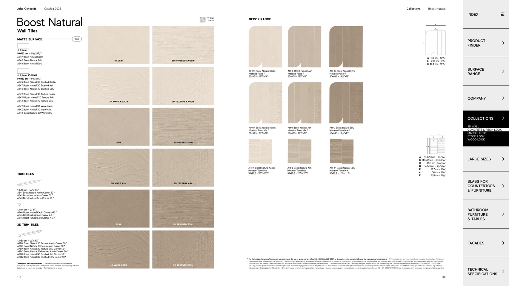 For the best performance of the mosaic we recommend the use of epoxy mortars (class RG - EN 13888/ISO 13007) or decorative resins-cement, following the manufacturer's instructions. - Al fine di ottenere una resa ottimale del mosaico, è consigliato l’utilizzo di