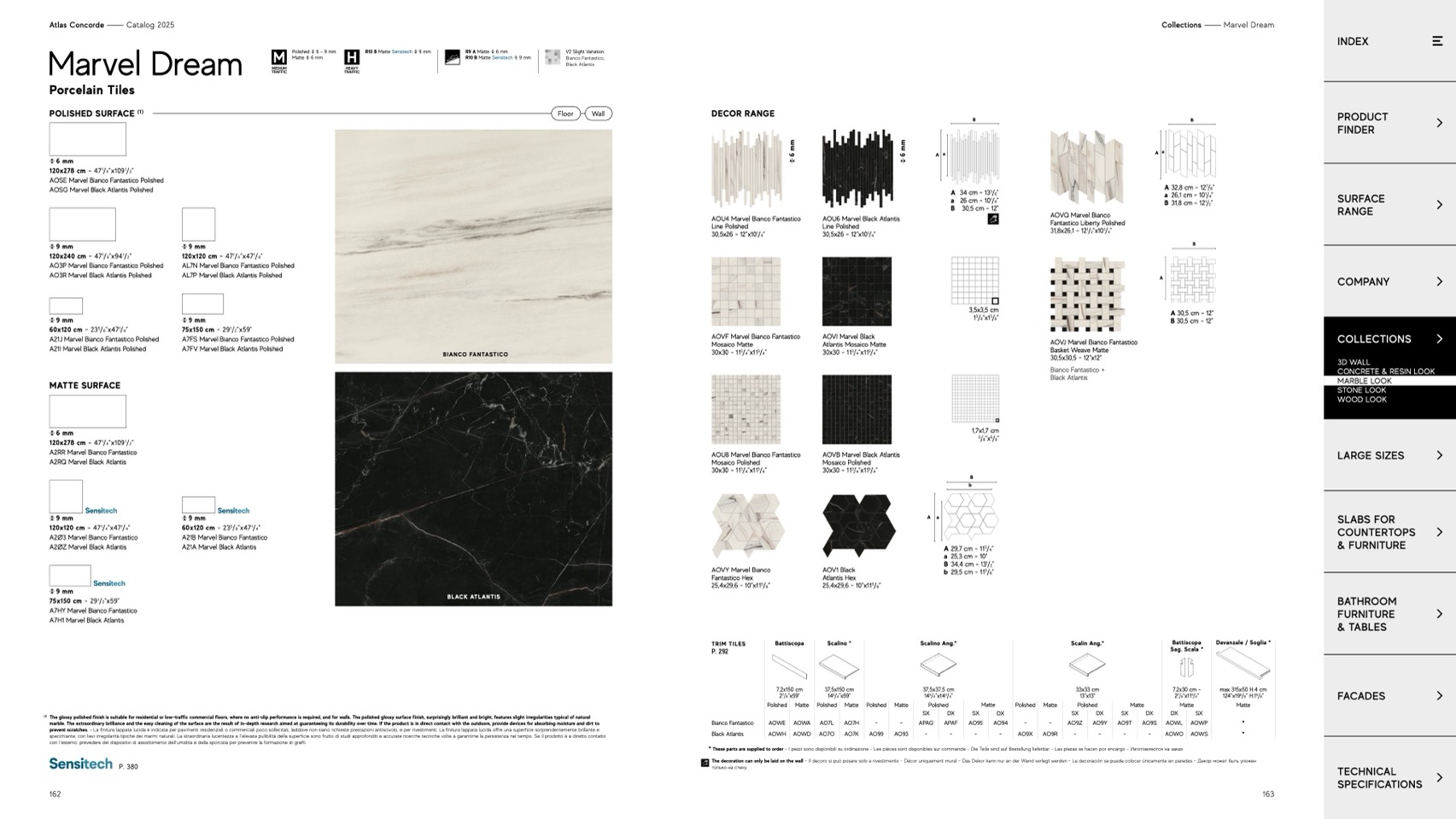 marble. The extraordinary brilliance and the easy cleaning of the surface are the result of in-depth research aimed at guaranteeing its durability over time. If the product is in direct contact with the outdoors, provide devices for absorbing moisture and dirt to