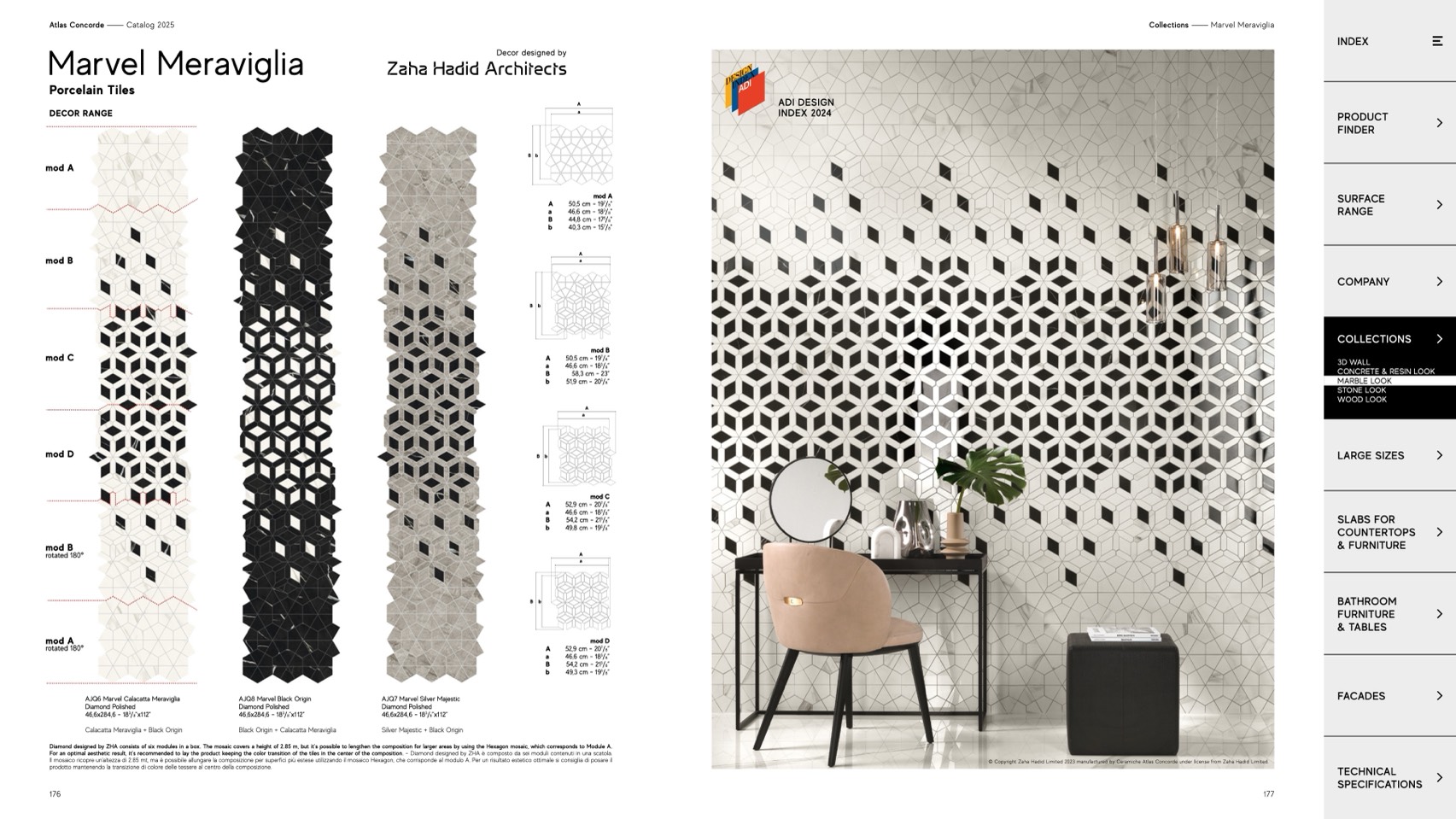 © Copyright Zaha Hadid Limited 2023 manufactured by Ceramiche Atlas Concorde under license from Zaha Hadid Limited.