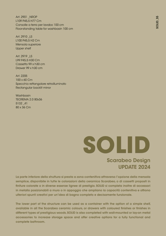 different types of prestigious woods. SOLID is also completed with wall-mounted or lay-on metal