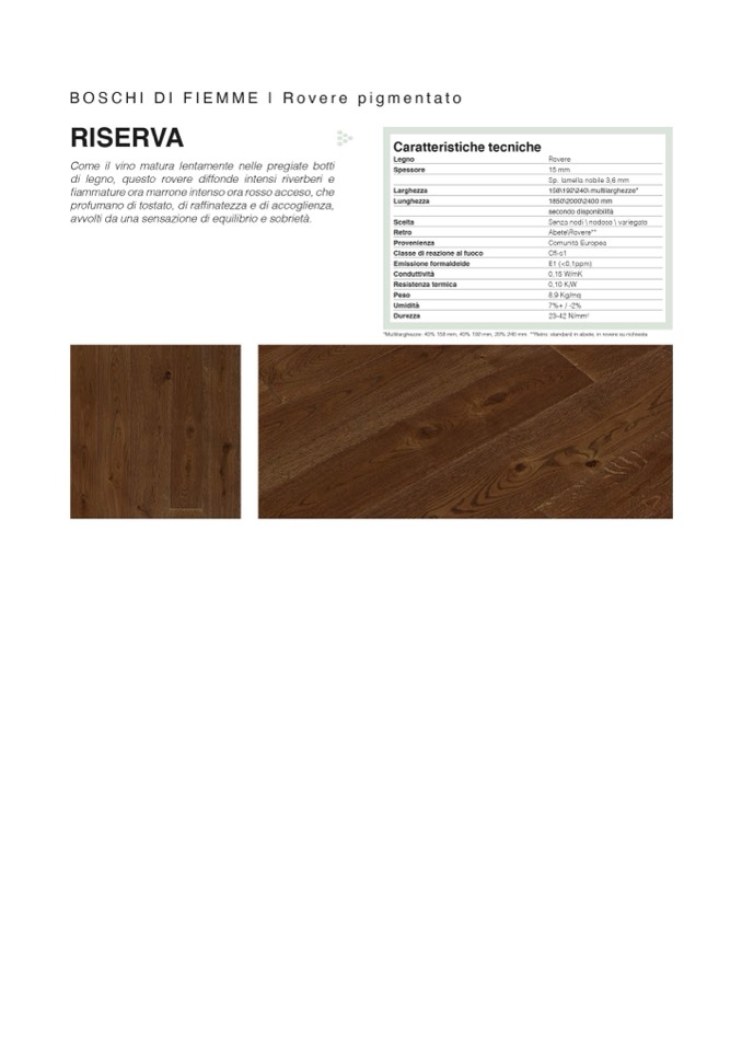 *Multilarghezze: 40% 158 mm, 40% 192 mm, 20% 240 mm. **Retro standard in abete; in rovere su richiesta
