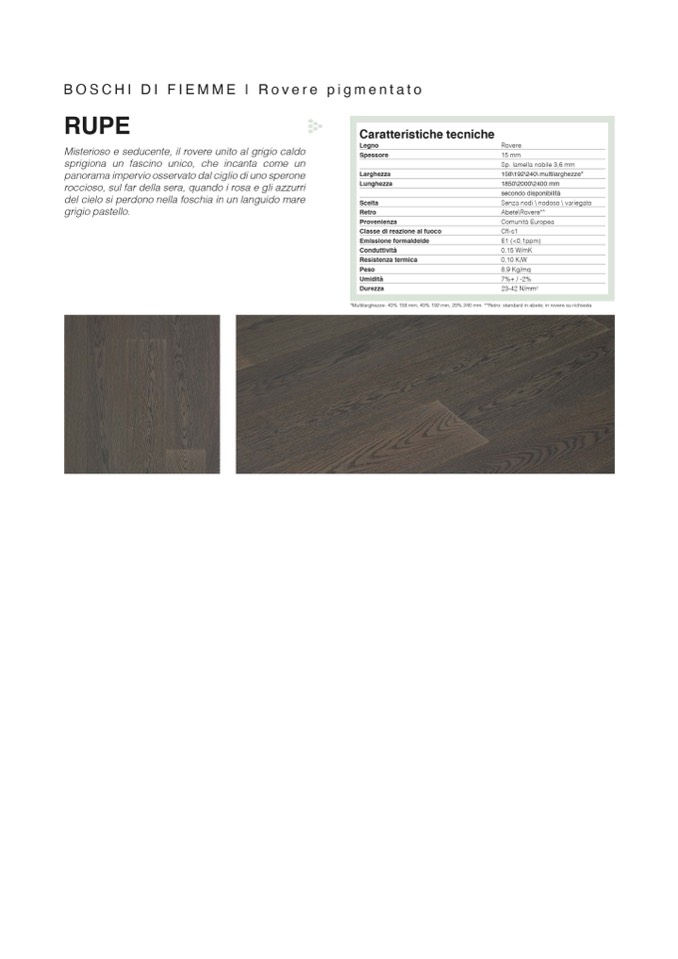 *Multilarghezze: 40% 158 mm, 40% 192 mm, 20% 240 mm. **Retro standard in abete; in rovere su richiesta