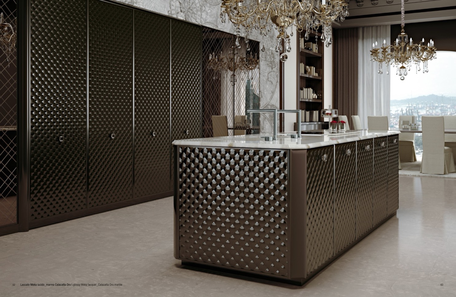 Laccato Moka lucido_marmo Calacatta Oro \ glossy Moka lacquer_Calacatta Oro marble